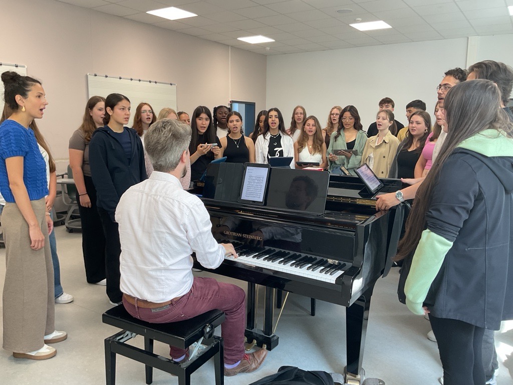 Dann bist du hier bei dem MINI-CHORPROJEKT genau richtig. Frau Marggraf und Herr Neuwahl üben mit den 8-Ef Klassen das Stück ,,We are the world“. Die beiden Lehrer dachten, sie tun sich zusammen und machen ein Projekt daraus, Frau Marggraf übernimmt die Frauen-Stimmen und Herr Neuwahl die Männer. Zusammen mit den Schülern und ihren Stimmen kommt der beste Song heraus.